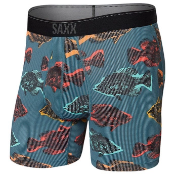Bokserki męskie trekkingowe / sportowe z rozporkiem SAXX QUEST Boxer Brief Fly cienie ryb – niebieskie