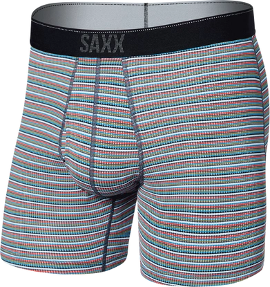 Bokserki męskie trekkingowe / sportowe z rozporkiem SAXX QUEST Boxer Brief Fly niebiesko-szare paski